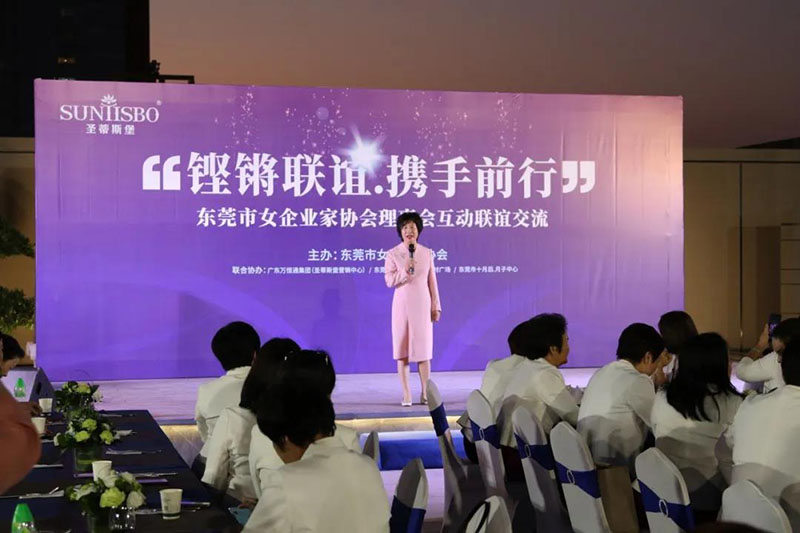 接下来,东莞市女企业家协会理事会会长叶小红女士上台发言,她表示非常感谢BB贝博艾弗森集团举办此次联谊交流会,同时,对我们的产品和企业文化给出了很高的评价。她号召东莞市女企业家协会以后要更多的举办此类交流联谊活动,以此增进会员企业之间的联系和了解,为未来进一步交流发展开创新局面!她希望我们能携手同行,强强联手,共赢未来,共创新辉煌!