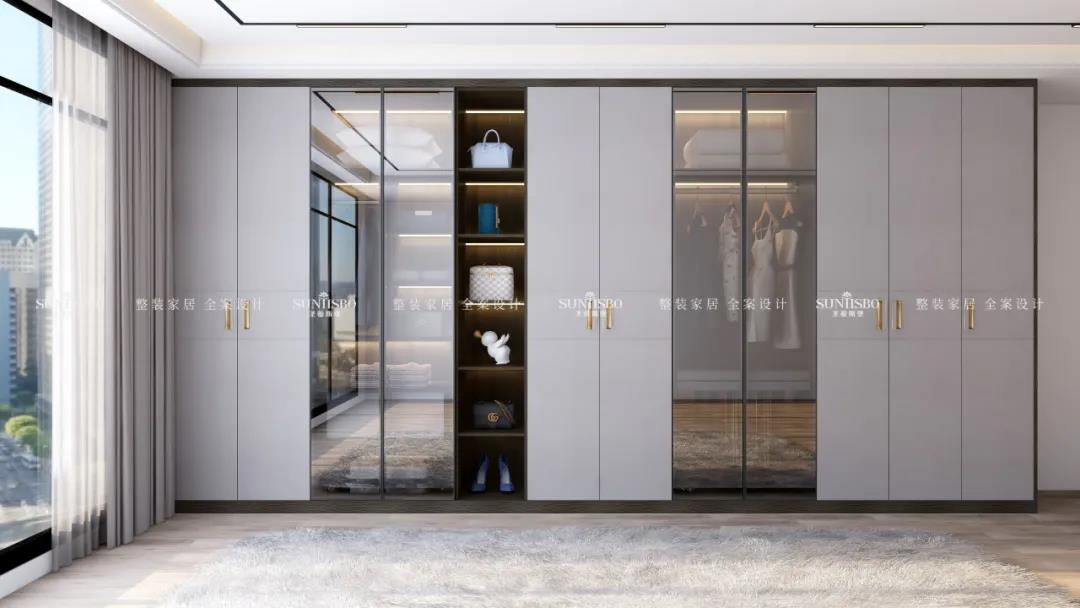 整体配色简约时尚,花色可选性多;材质上采用新型高级材料——欧松板,通过UV漆工艺表面形成超级肤感膜,使接触面舒适细腻。同时使用线条感简洁利落的拉手作为设计元素,子母拉手的设计别具一格,体现了设计师的用心;搭配灯光和功能件,使产品极具展示效果与功能性。